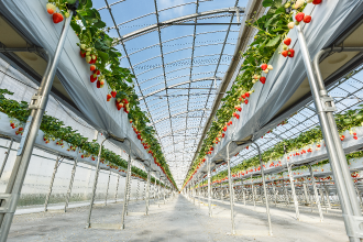 いちごにとってストレスなく、すくすく育つ環境にする為に、ハウス内に様々なセンサーを取り付け、温度・湿度・CO2・根っこの温度・光・肥料・水の量などを最適に管理しています。