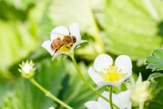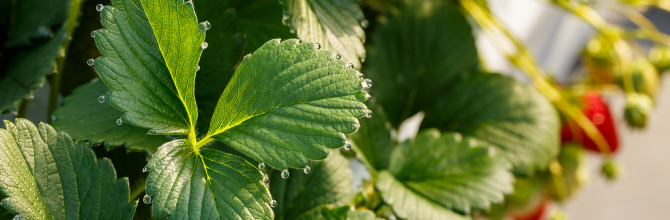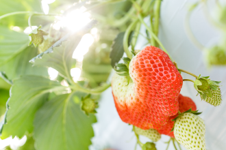 様々な漢方をブレンドした液やビールから抽出したビール酵母を散布し、植物の持つ本来の抵抗性を活性化し、健康な木に育てていくことで、甘くて美味しいいちごに育てます。