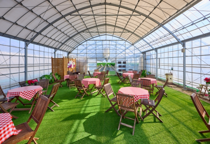 ハウスの中はいつもポカポカ♪ 休憩スペースがございますので、摘み取ったいちごをテーブルでゆっくり味わうことも出来ます。